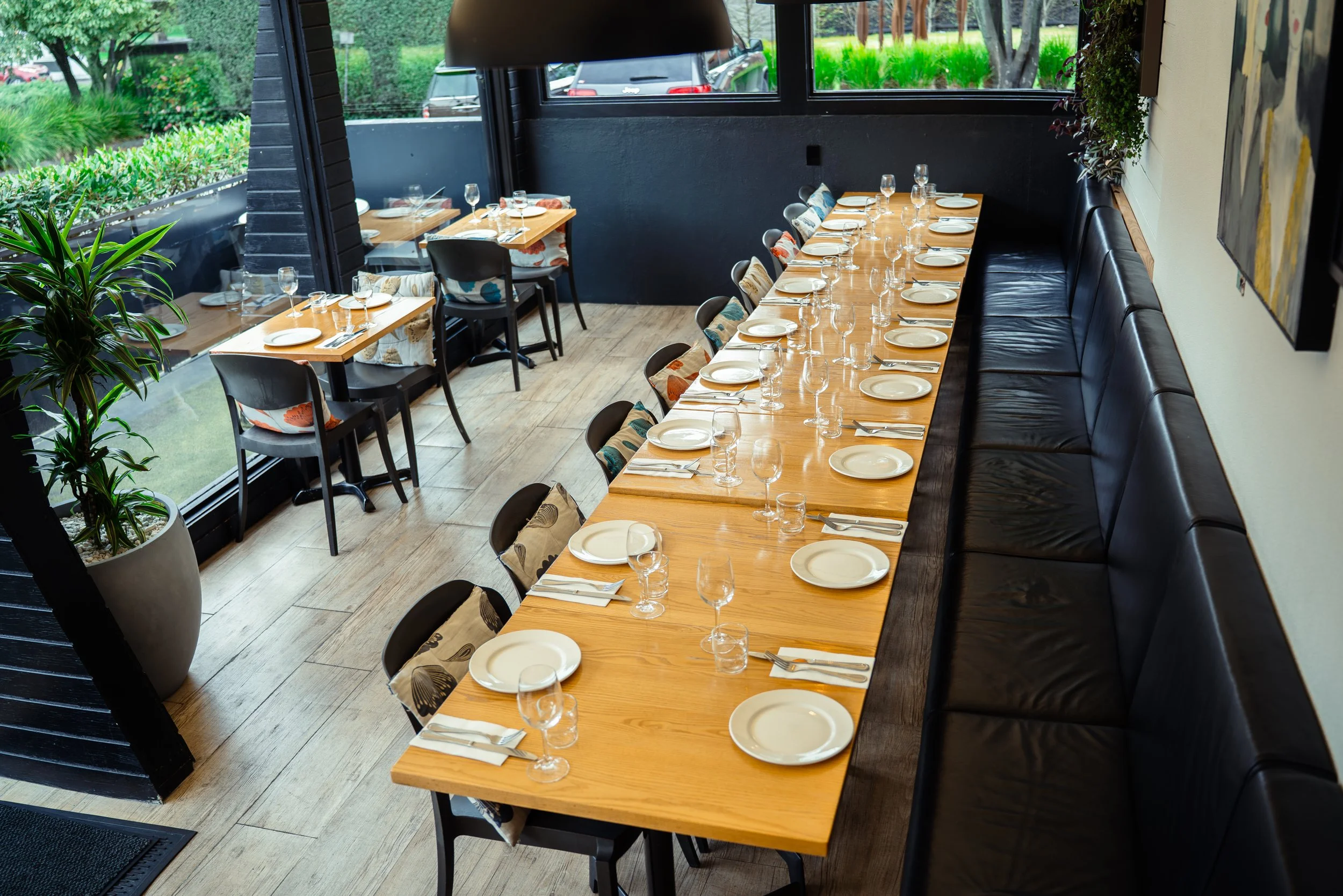 Our Upper space is filled with natural light and offers an inviting atmosphere with large windows overlooking Hagley Park. The space can be easily tailored to suit your event. With seating for up to 65 guests and flexible table arrangements, it’s the perfect setting to make your event truly unforgettable.